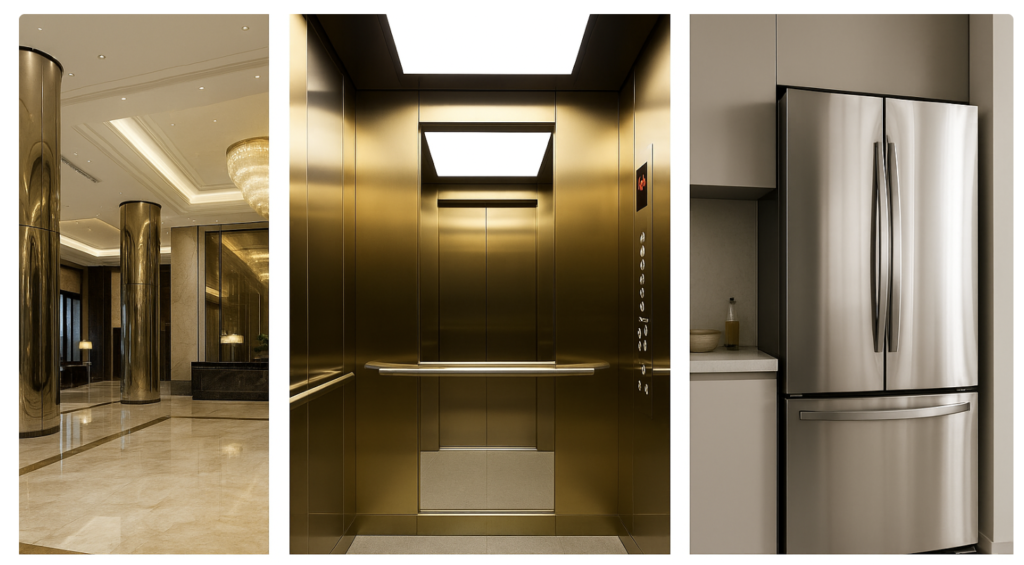 Mirror 8K stainless steel is widely used in industries where luxury, modern design, and surface quality are critical.