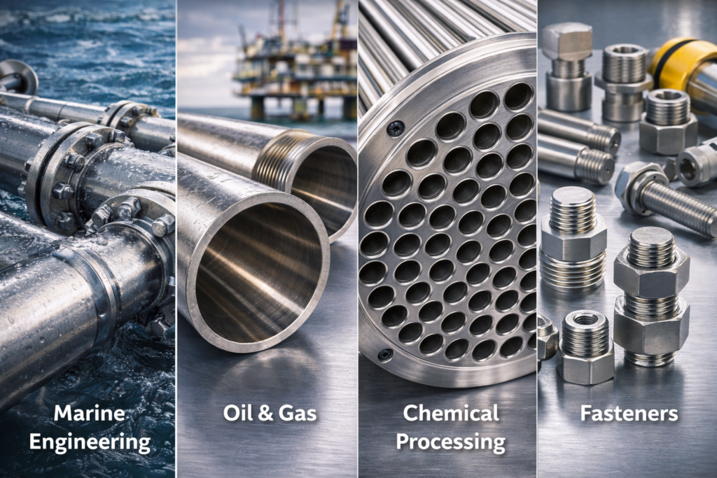 | Monel 400 | N04400 | Solid solution | Excellent corrosion resistance | Marine, chemical |