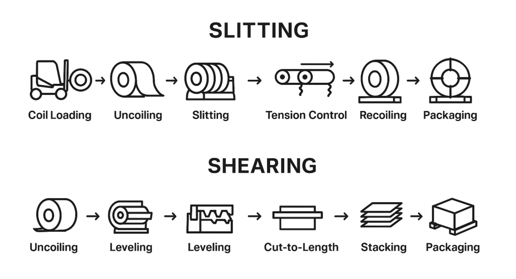 Shearing and slitting are essential coil-processing services used to convert wide coils into customized widths, sheets or narrow strips with precise dimensional control.